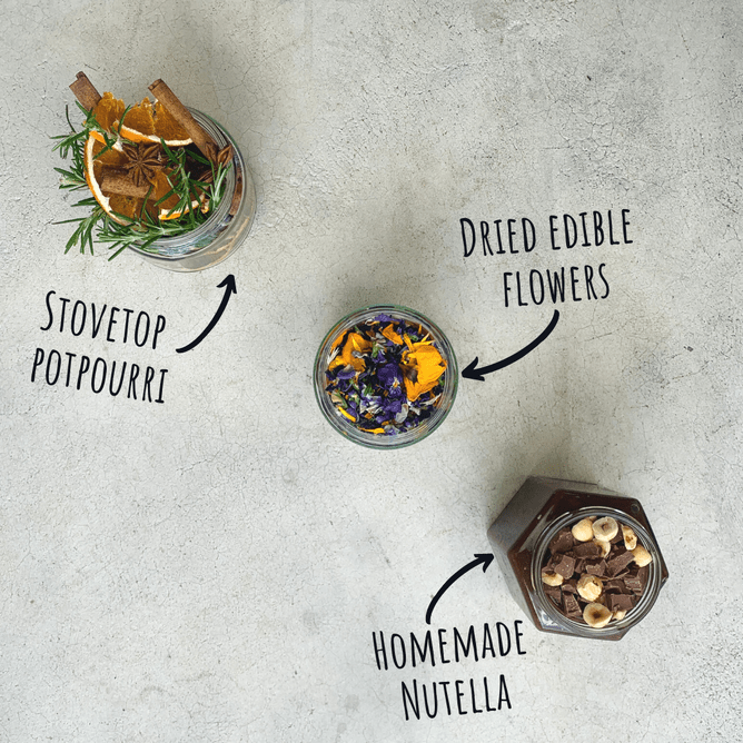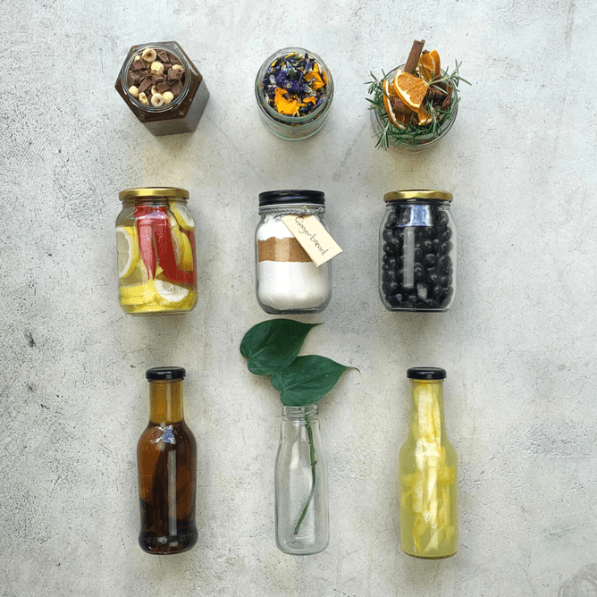 All 10 jars are filled with things I foraged from home or that I could source package-free from my local bulk store. I've popped links to various recipes below if you want to dive in.