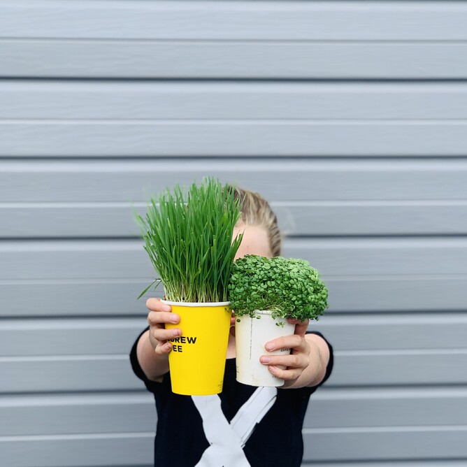 - use any small clean container you have (I've been rescuing disposable coffee cups, washing and poking holes in the bottom). Tetrapacks or yoghurt containers are also great