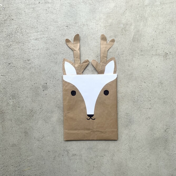 The Reindeer: What can I say - it had to be done. Paper shopping bag + scrap of paper + sharpie.