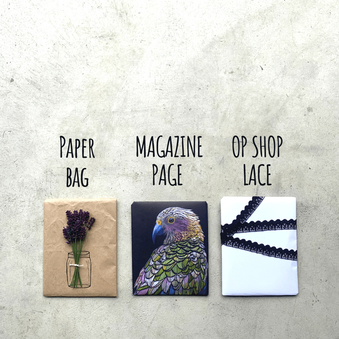Try the Japanese art of Furoshiki using op-shopped scarves or bits of fabric.
