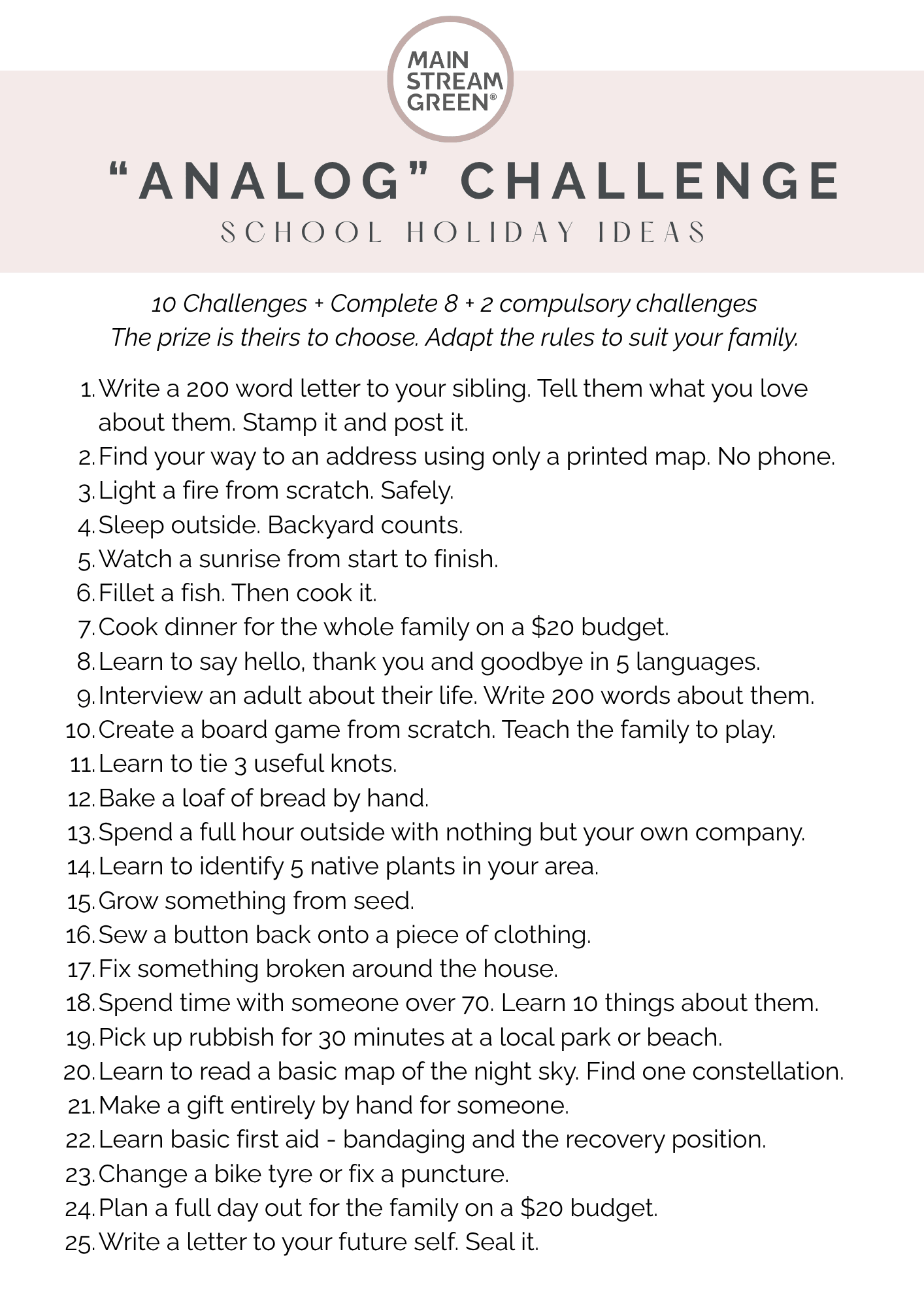 School Holiday 'Analog' Challenge